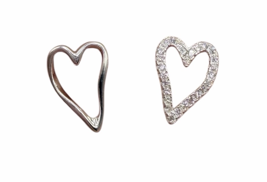 Irregular heart studs one plain silver one with czs on